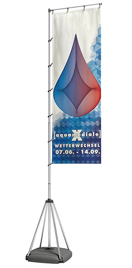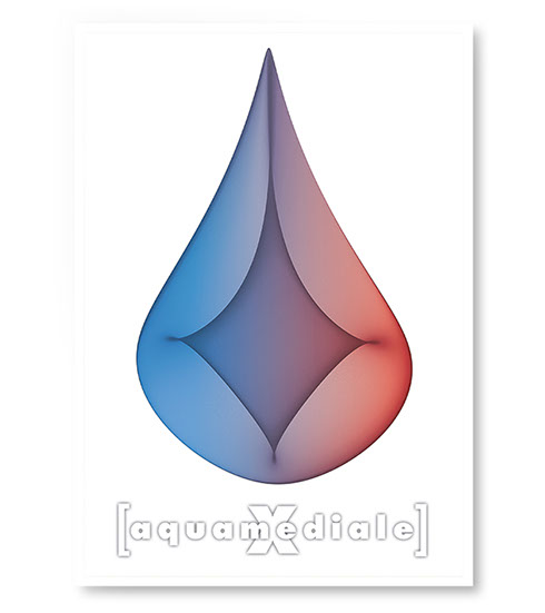 The drop builds a symbiosis between "aqua" and "media". The gradient takes on the colors of the previous festival and is a further part to connecting the two elements.